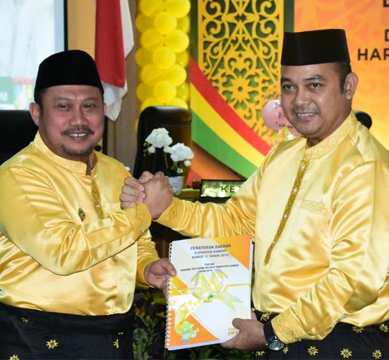Bangkinang - Dalam rangka memperingati Hari Jadi Kabupaten Kampar yang ke-70, Dewan Perwakilan Rakyat Daerah (DPRD) Kabupaten Kampar menggelar rapat paripurna istimewa DPRD Kabupaten Kampar, Kamis (6/2/2020) di ruang rapat paripurna DPRD Kabupaten Kampar.