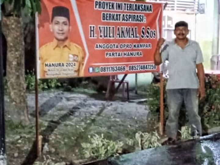 KAMPAR,INFORIAU.CO - Kembali, Komisi III DPRD Kabupaten Kampar, H Yuli Akmal SSos merealisasikan bantuan semenisasi ruas jalan umum di Desa Tarai Bangun, Kecamatan Tambang Kabupaten Kampar, Riau.